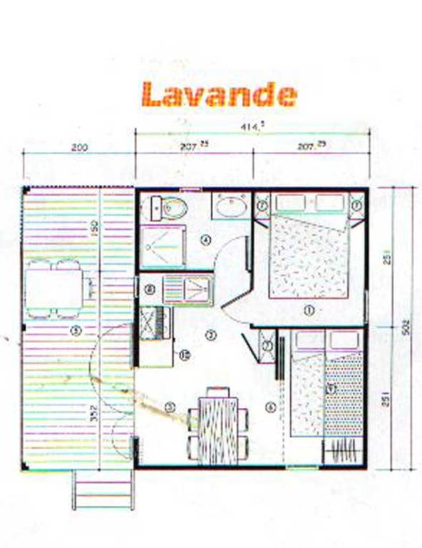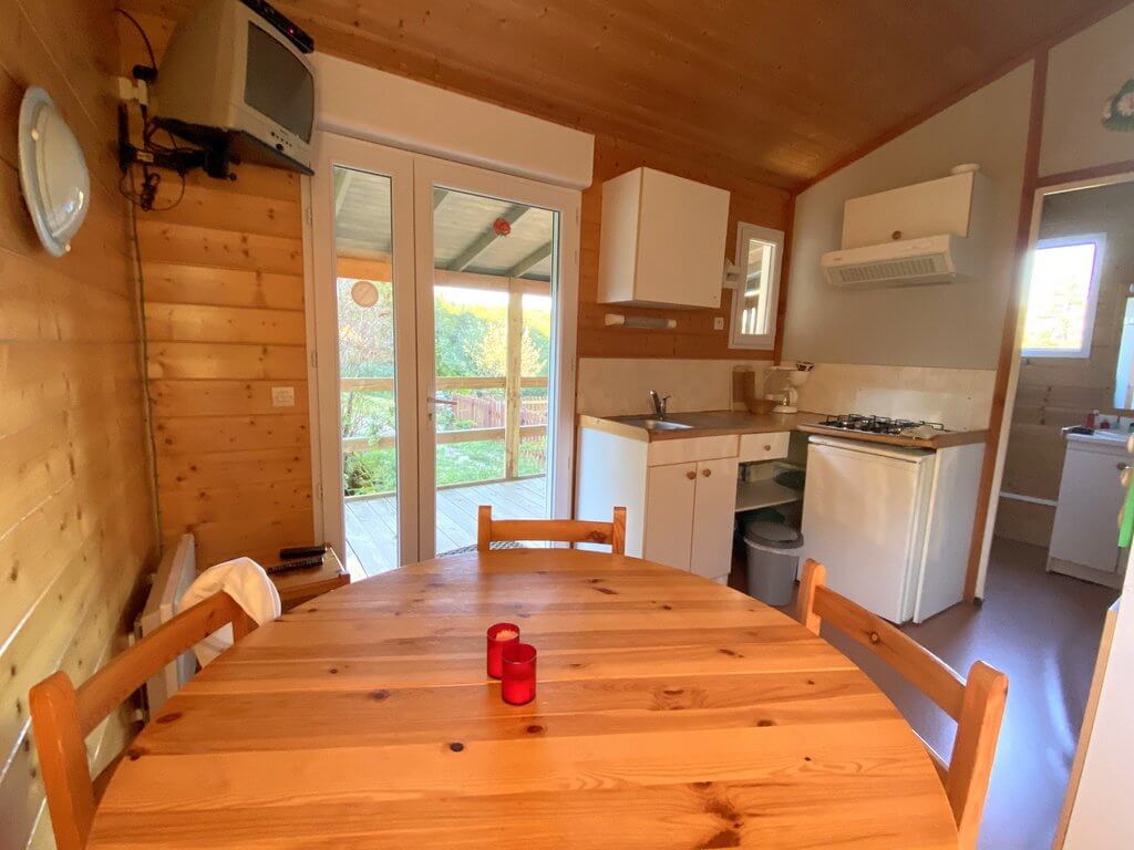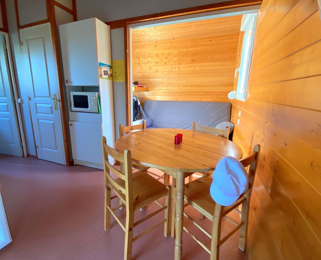 - Inclus dans les Chalets : 2 couettes 220x240cm, 4 oreillers 60x60cm, 1 rouleau de papier WC, 1 serpillière et 1 produit de nettoyage.
